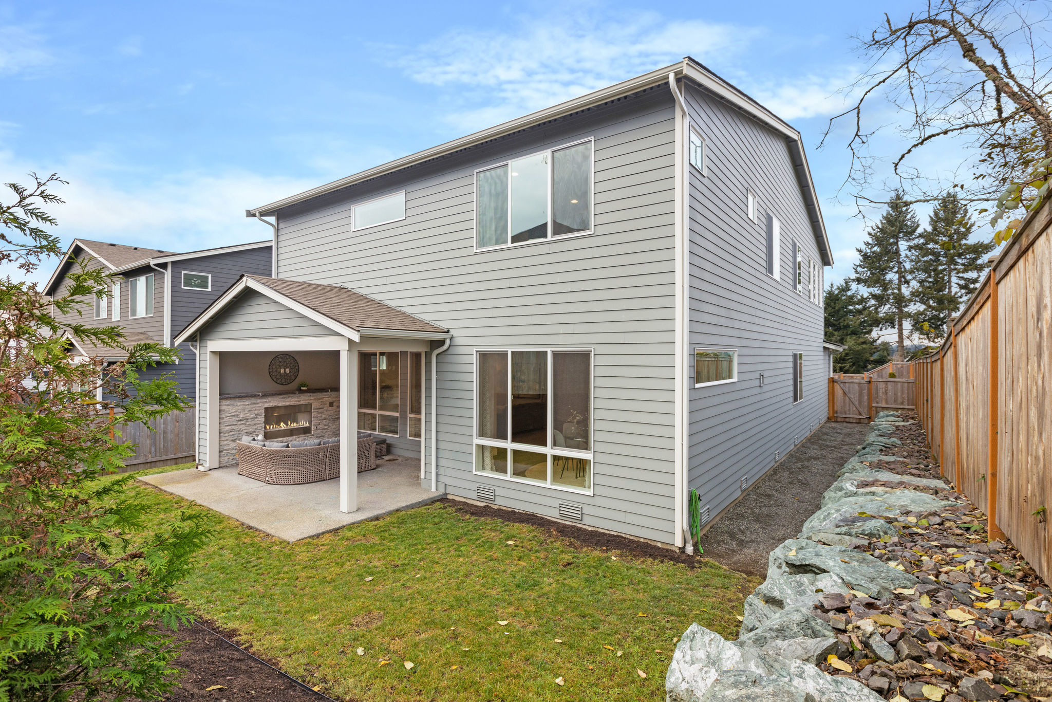 Welcome to the epitome of modern luxury and comfort! North facing home is nestled in small and charming community established in 2022, located on corner lot in cul-de-sac. Enjoy open concept floor plan with beautiful Living Room and Dining spaces abundant with natural light, vaulted ceilings and covered outdoor patio… Read Morewith a gas fireplace. Beautiful territorial and Mt Baker views. Gourmet Kitchen features expansive quartz island, high-end appliances and incredible amount of storage. Engineered hardwoods flow through main level. Main floor features bedroom with en-suite 3/4 bath. Upstairs present Primary Suite with den, spacious secondary bedrooms and Bonus Room. Fully fenced yard. Lots of parking. Conveniently located to major freeways and amenities. Highly rated Edmonds School District!Read Less
